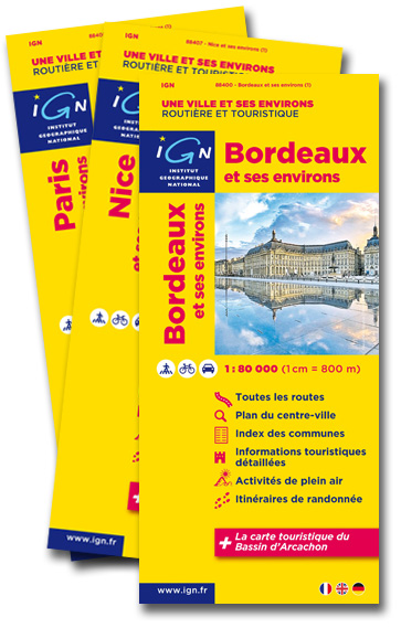 Ultra-lisibles et de grande précision, les cartes « Une ville et ses environs » vous permettront de planifier vos déplacements professionnels ou personnels et de pratiquer vos loisirs préférés à l’aide de 3 échelles différentes adaptées à vos besoins : de la carte générale (1:80 000) au plan de ville (Variable selon cartes. Principalement 1: 13 000) en passant par un extrait de carte IGN TOP 25 (1:30 000) pour pratiquer la randonnée ou une carte touristique pour découvrir des sites d’exception.